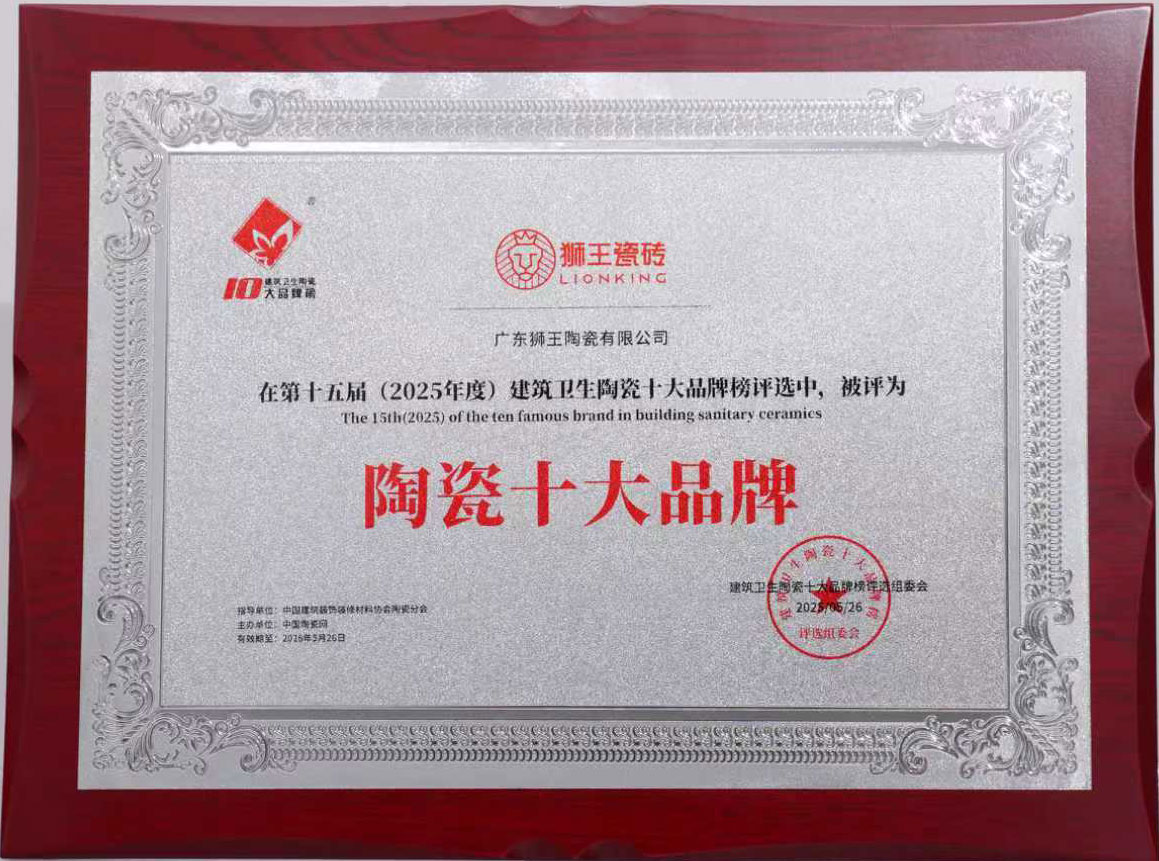 狮王瓷砖连续九届荣获陶瓷界至高荣誉“中国陶瓷十大品牌”